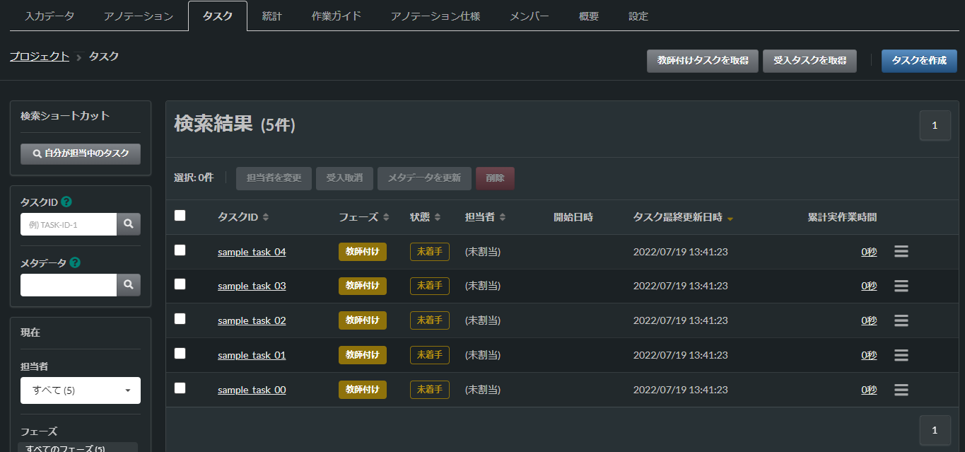 タスク「sample_task_00」にはアノテーションが付与されています。